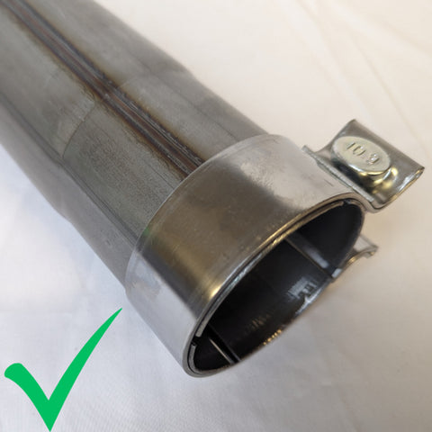 Our exhaust tips are slightly larger than the factory ones and will fill the bumper openings perfectly. They are constructed from 304 stainless and are available in polished or a durable black CeraKote